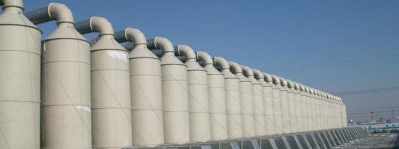 PP噴淋塔,采用氣液逆向吸收方式處理,即液體自塔頂向下以霧狀(或小液滴)噴撒而下。廢氣則由塔體(逆向流)達到氣液接觸之目的。此處理方式,可冷卻廢氣、調理氣體及去除顆粒,再經過除霧段處理后,排入大氣中。