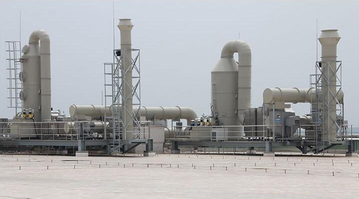 洗滌后,廢液收集至集水槽中,再排放至廢水系統處理。塔內氣體由風機送入,氣體由下向上。吸收液由耐酸泵打入塔頂通過布液裝置均勻向下噴淋,形成逆流吸收,中和后的氣體經塔內除霧段后,經煙筒排入大氣,不同的酸性氣體采用不同的吸收液體吸收。采用氫氧化鈉(NaOH)溶液做吸收中和液,當溶液濃度2-6%時凈化(HCL)酸霧(初始濃度<400㎎/m³)效率可達98%以上;凈化(H2SO4)酸霧(初始濃度<300㎎/m³)效率可達97%以上;凈化硝酸(HNO3)酸霧(初始濃度<100㎎/m³)效率可達90%以上。